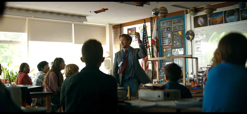 It also helps that he plays such a likable character. There is a line in this film where Ryan Gosling’s character, Ryland Grace, says he puts the “not” in astronaut. As corny as that may sound, that line solidifies his entire journey. I do not want to spoil everything that happens in this movie, but the narrative constantly unfolds bits and pieces of the character as it goes along through its clever non-linear format. Much of the film is set in space, but there are portions that take place on earth, and those portions are surprisingly engaging. Grace is a middle school teacher, which only adds to his likability. Remember “Interstellar?” Arguably the biggest drive Cooper has in that film that allows him to try to save earth are his children. Grace does not have any kids, but his middle school class, while temporary, almost comes off as a set of children he never had.