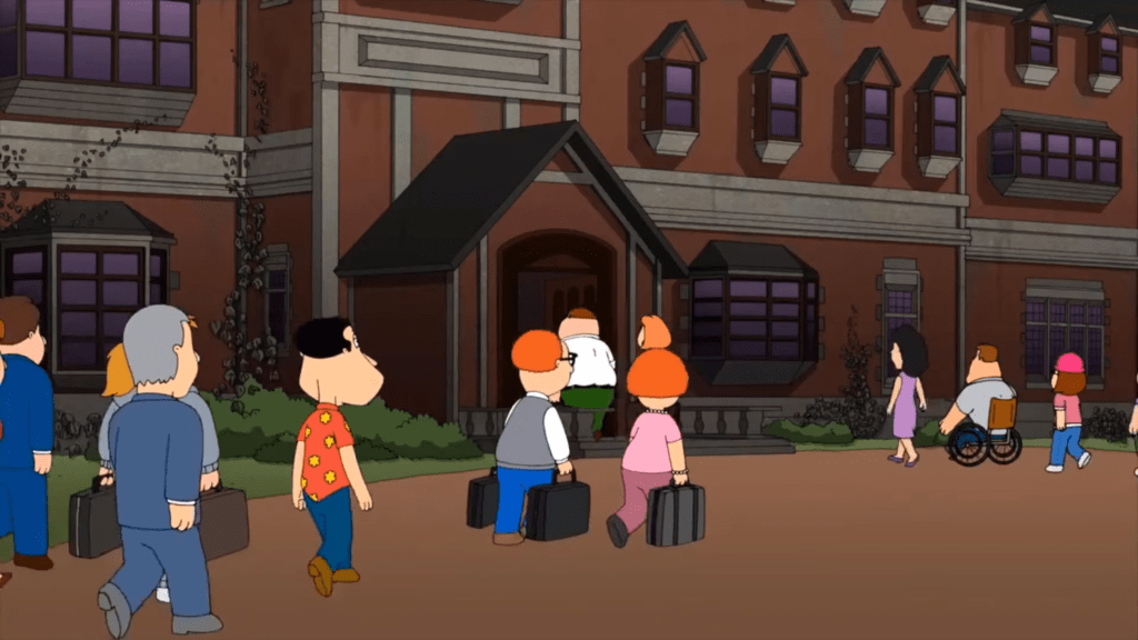 Now, this is a cartoon, meaning that you can get away with more in a presentation of its kind compared to something in live-action. Thus, this episode handles a crossover sort of situation at hand. Turns out the Griffins were not the only ones to get the party invitation, but as Lois points out, “the whole town got invited.” Not only did they get invited, but they got invited “in their honor.”