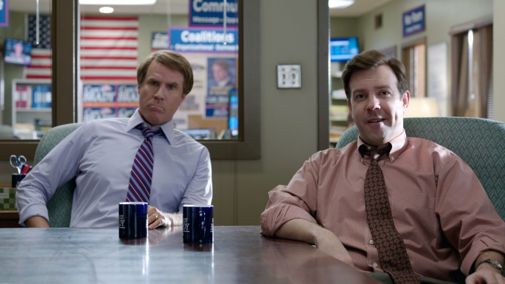 I am reviewing this movie during the U.S. election season of 2024, and one of the most prominent things I can say about the film is that there are parallels to said season. I do not want to highlight my political views, but Cam Brady as a character reminds me a bit of Donald Trump. They are not the same guy by any stretch of the imagination. But Trump seems to do well with males. There is a scene where we see Brady and crew watching a concept for a campaign ad and it paints Brady as a “REAL AMERICAN MAN,” and spends lots of time hyping up how his partner is a flexible, attractive cheerleader, and the ad shows her off like she is auditioning for Playboy. Unsurprisingly, that ad tested very well with men, but not so fantastically with women. Without spoiling anything, Brady relationship with said partner sort of reminds me of what some people speculate about Trump’s current relationship with his wife, Melania. Specifically as to whether Melania genuinely loves her husband as opposed to being by his side for an unrelated reason. But you could also say this movie does a good job at drawing parallels to typical behavior we see in politics nowadays, more than what we are just seeing in this election season. Whether it is putting words in other people’s mouths, finger-pointing, politicians pretending to be more interested in a subject or topic than perhaps they actually are. The movie shows how much the opponents try to one up each other to the point where they will be okay with issuing the most public of humiliations. The rivalry comes off like “Impractical Jokers” if instead of it being between a group of friends, it is between two enemies who have no chance of making up and making out at the end of the day.
