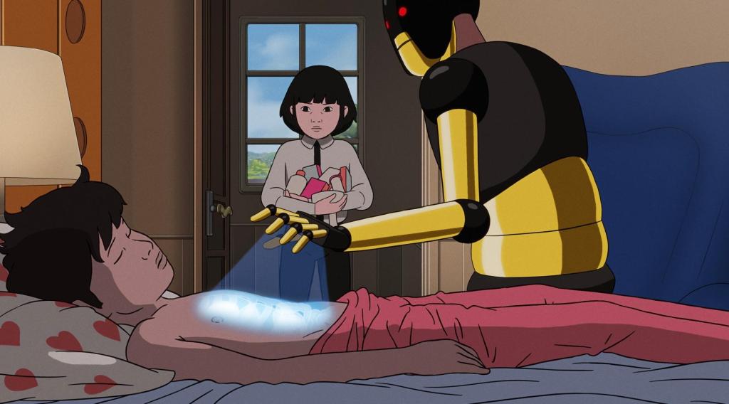 This film is the feature-length debut from Ugo Bienvenu, and I think anyone’s efforts should be commended should they direct a feature film for the first time. Although Bienvenu’s in particular had me perplexed, because throughout the film, I was under the impression I was watching the work of a longtime veteran. The 2D animation style feels very Studio Ghibli-like with some of the film’s occasionally vivid landscapes, strong colors, and cozy locations. If you told me that this film were being directed by Hayao Miyazaki, chances are I could believe you. If this film were live-action, based on all the 1980s movies talk from before, you could have convinced me Steven Spielberg put something like this together. That said, if you want to get technical, Steven Spielberg has done an animated film before, specifically “The Adventures of Tin-Tin,” but these films do not quite feel the same. I enjoyed that movie, but still.