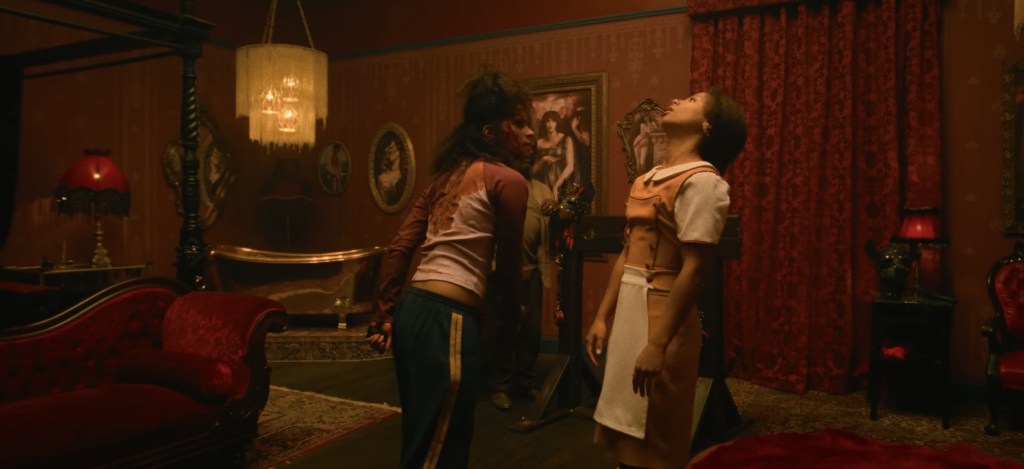 What makes this film great is more than just its style. And I say that realizing its style is quite pleasing. What makes everything work is the connection between Asia (Beatz) and Maria Reaves (Myha’la). The film starts with the younger versions of the two as they try to run from their abusive father. Asia shoots him and gets arrested, while Maria remains in his custody. The film then flashes forward a decade to where Asia becomes a housekeeper at a New York City high-rise. As she takes on the job, she learns more about the building’s history, as well as what could happen to her if she is not careful.